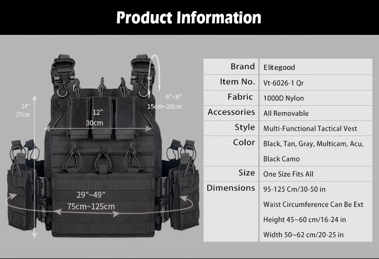 🌟 VT-6026-1 Quick Release Elitegood Plate Carrier Vest